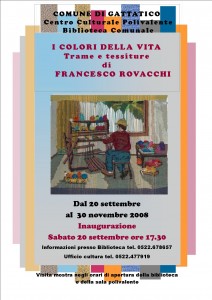 ” Quando io e la mia classe siamo andati in biblioteca Giovedì 25 settembre 2008, ho visto la mostra degli arazzi che era bellissima! La Mara o la Marina (non mi ricordo chi era) hanno detto che la moglie di Francesco Rovacchi (che chiamo il Signore degli Arazzi, sapete c’è il signore degli anelli invece lui è il signore degli arazzi!) stava male.